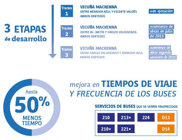 Asimismo, Guillermo Muñoz señaló que “el corredor Vicuña Mackenna es un proyecto largamente añorado y que beneficiará a más de 110 mil usuarios del sistema. Con el avance de este proyecto estamos cada vez más cerca de dar un acceso expedito a la zona sur oriente al centro de Santiago, reduciendo en hasta un 50% los tiempos de viaje y, de esta manera, mejorando la calidad de vida de miles de personas”.