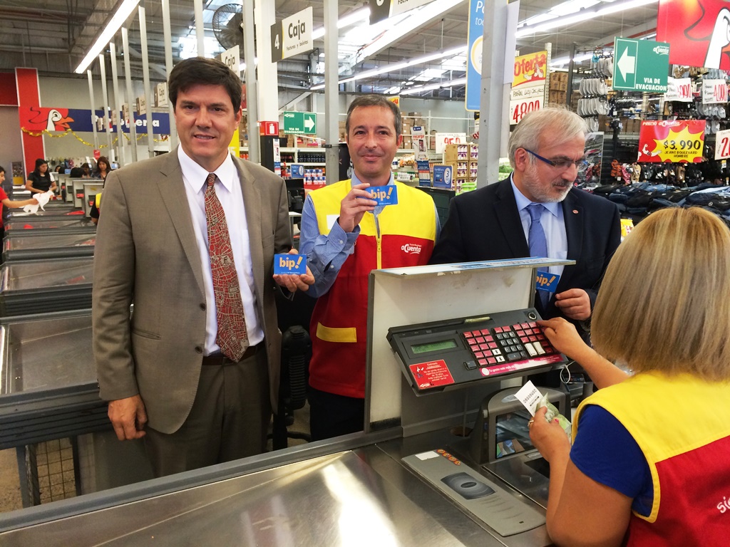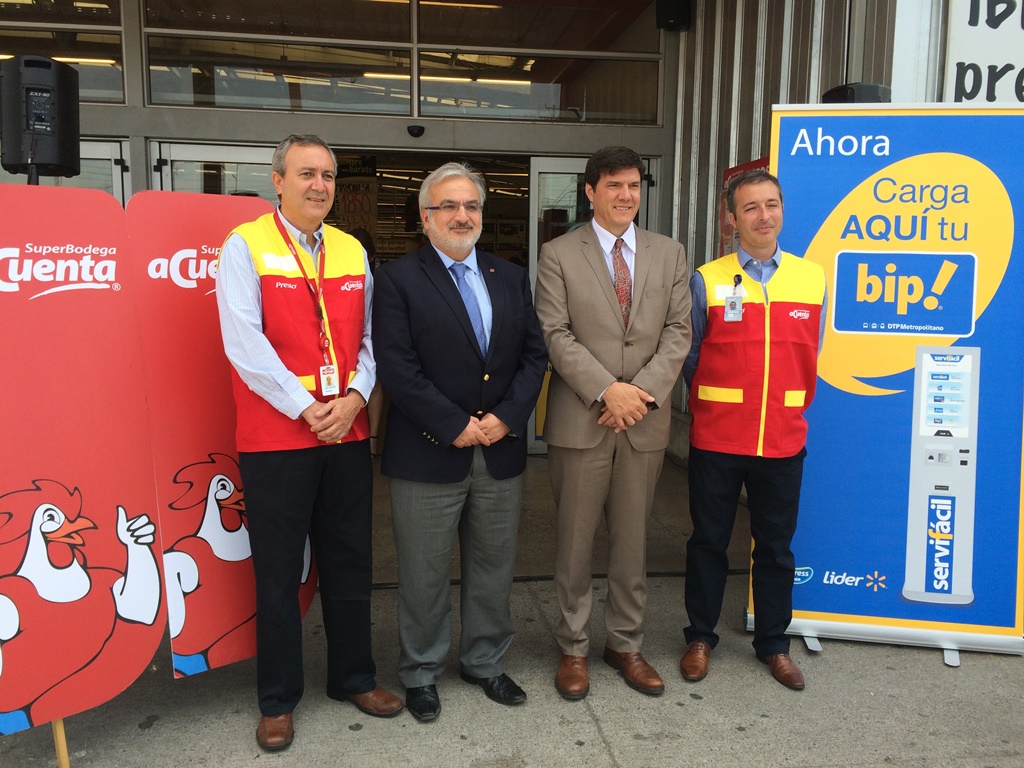 En el marco del plan de expansión de la red de carga Bip!, ya es posible cargar la tarjeta en 34 supermercados ACuenta, gracias al acuerdo anunciado esta mañana por el Ministerio de Transportes y Telecomunicaciones, Metro de Santiago y la empresa Walmart.