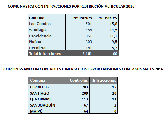 Las comunas de Las Condes, Santiago, Providencia y 脩u帽oa concentran cerca del 50% de las multas por restricci贸n vehicular, seg煤n inform贸 el ministro de Transportes y Telecomunicaciones, Andr茅s G贸mez-Lobo, quien junto a la jefa de Fiscalizaci贸n, Paula Flores, entregaron un balance de las tareas realizadas por la cartera para enfrentar los altos niveles de contaminaci贸n.