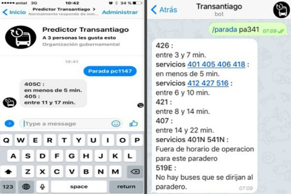 Dos de las redes sociales más populares del mundo serán a partir de hoy canales de información para que los usuarios puedan conocer el tiempo estimado para la llegada de buses del Transantiago. La ministra de Transportes y Telecomunicaciones, Paola Tapia, en conjunto con el director del DTPM, Guillermo Muñoz, dieron a conocer esta mañana la forma en que la ciudadanÃa podrá utilizar los servicios de mensajerÃa móvil de Facebook y Telegram, para conocer información del transporte público capitalino.