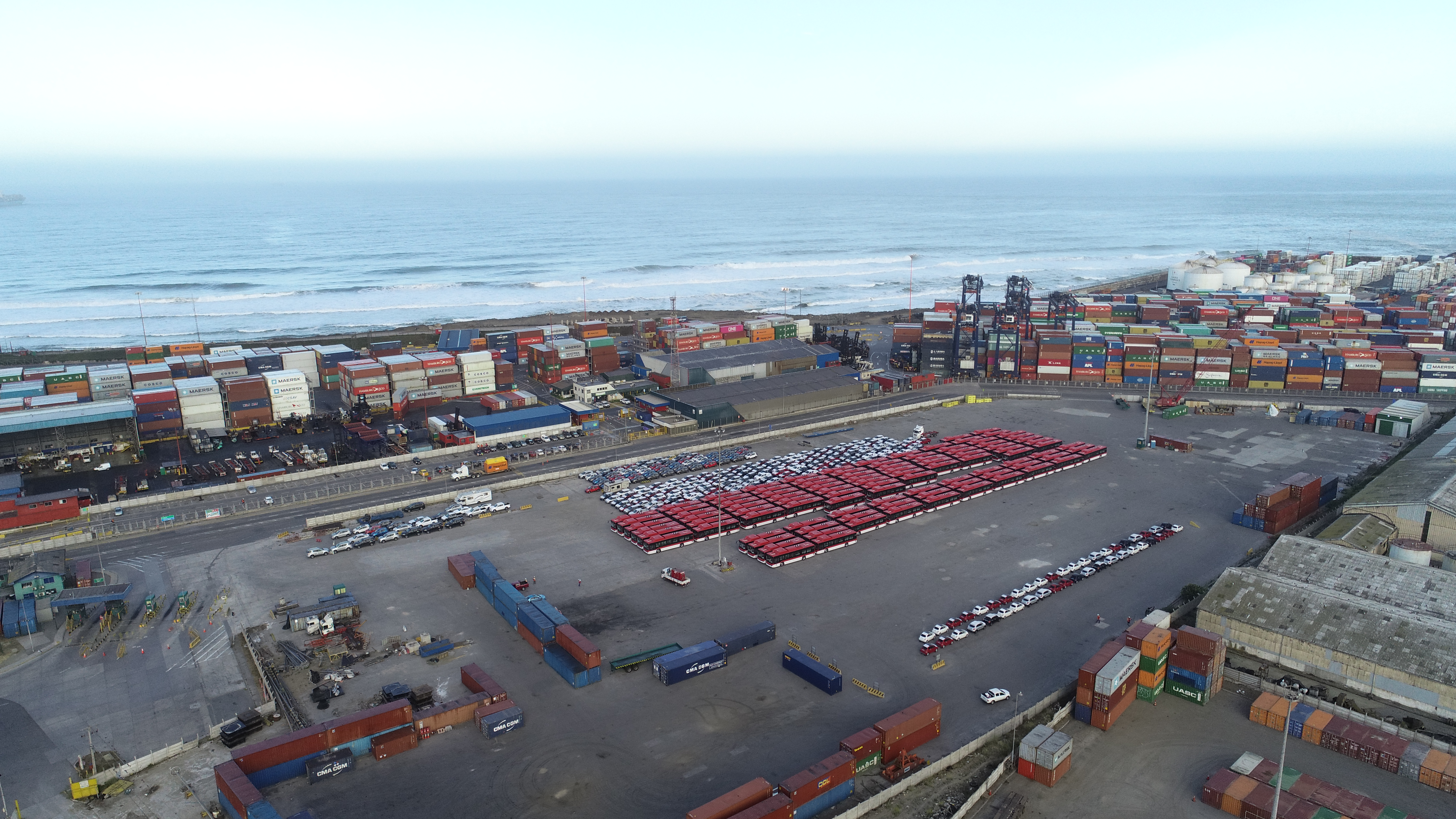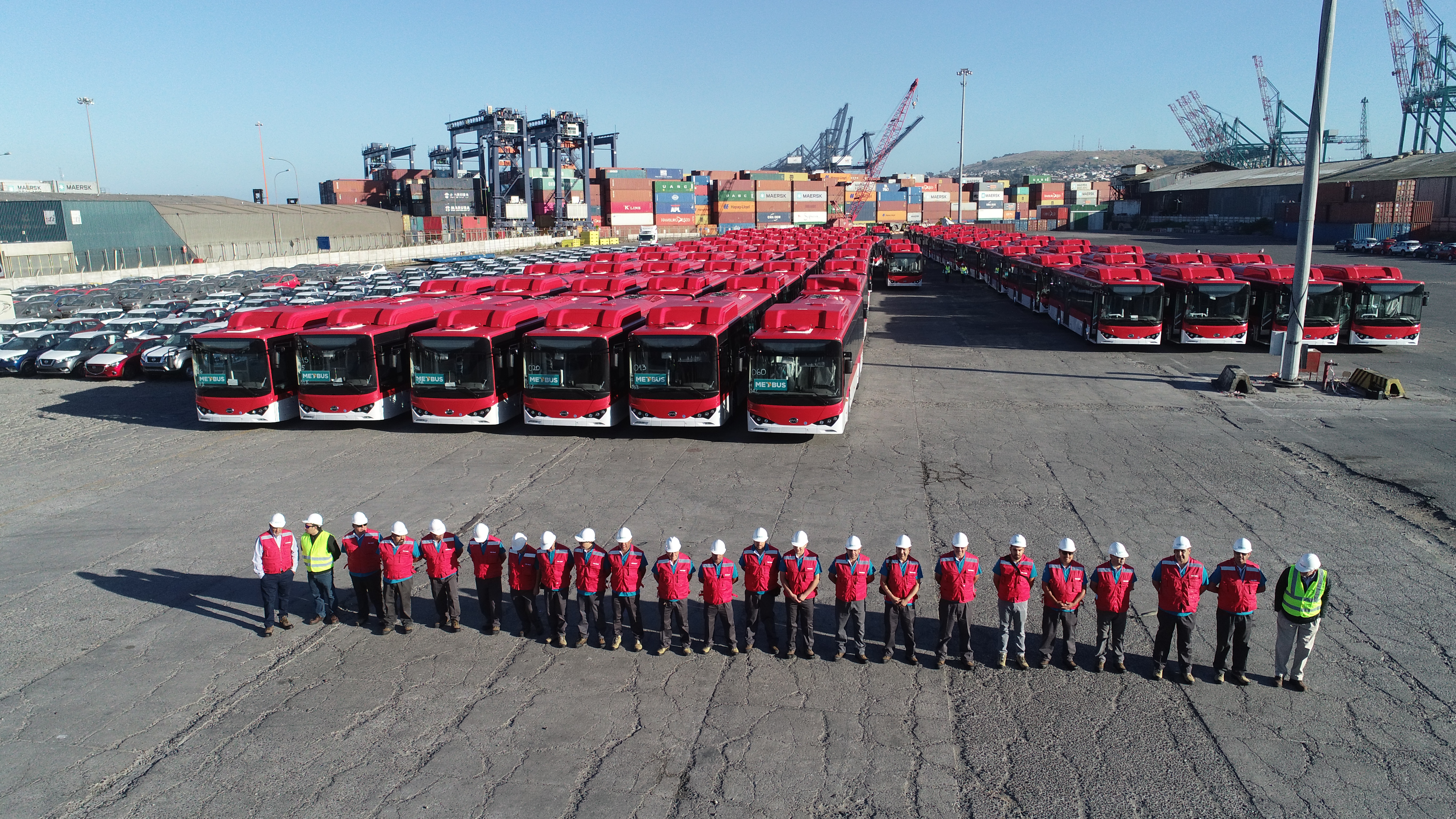 Durante la madrugada del sábado desembarcaron en el Puerto de San Antonio los primeros 100 buses eléctricos que se incorporaran a la operación del sistema de transportes de Santiago. Los buses provenientes de China se destinarán para la operación del corredor de Grecia el primer electro corredor en operar 100% con esta tecnologÃa en Latinoamérica.