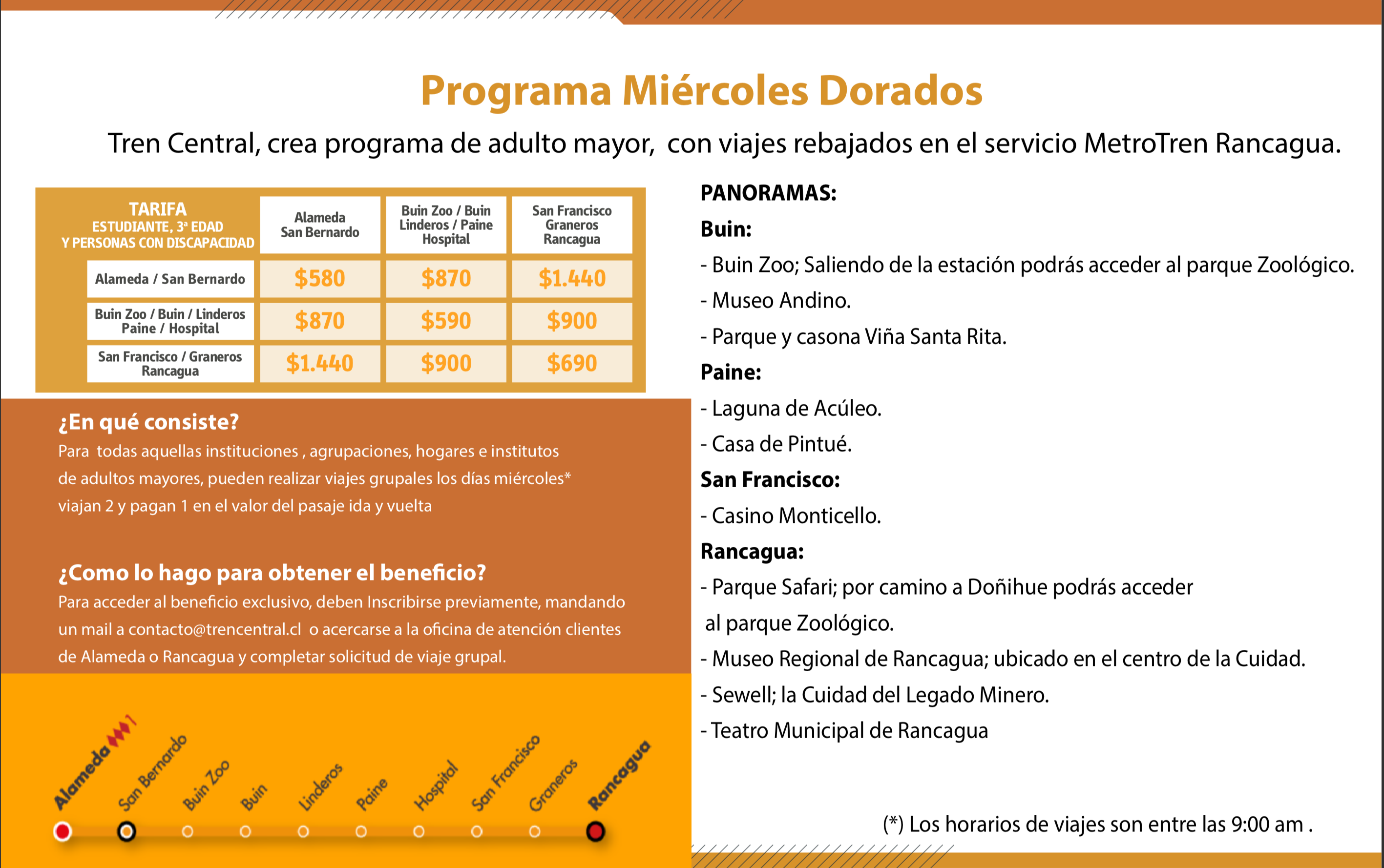 De esta forma, se espera facilitar el acceso de agrupaciones de adultos mayores a atractivos que se encuentran en el radio del servicio Metrotren Rancagua, como Buin Zoo, Sewell, la Viña Santa Rita, entre otros.