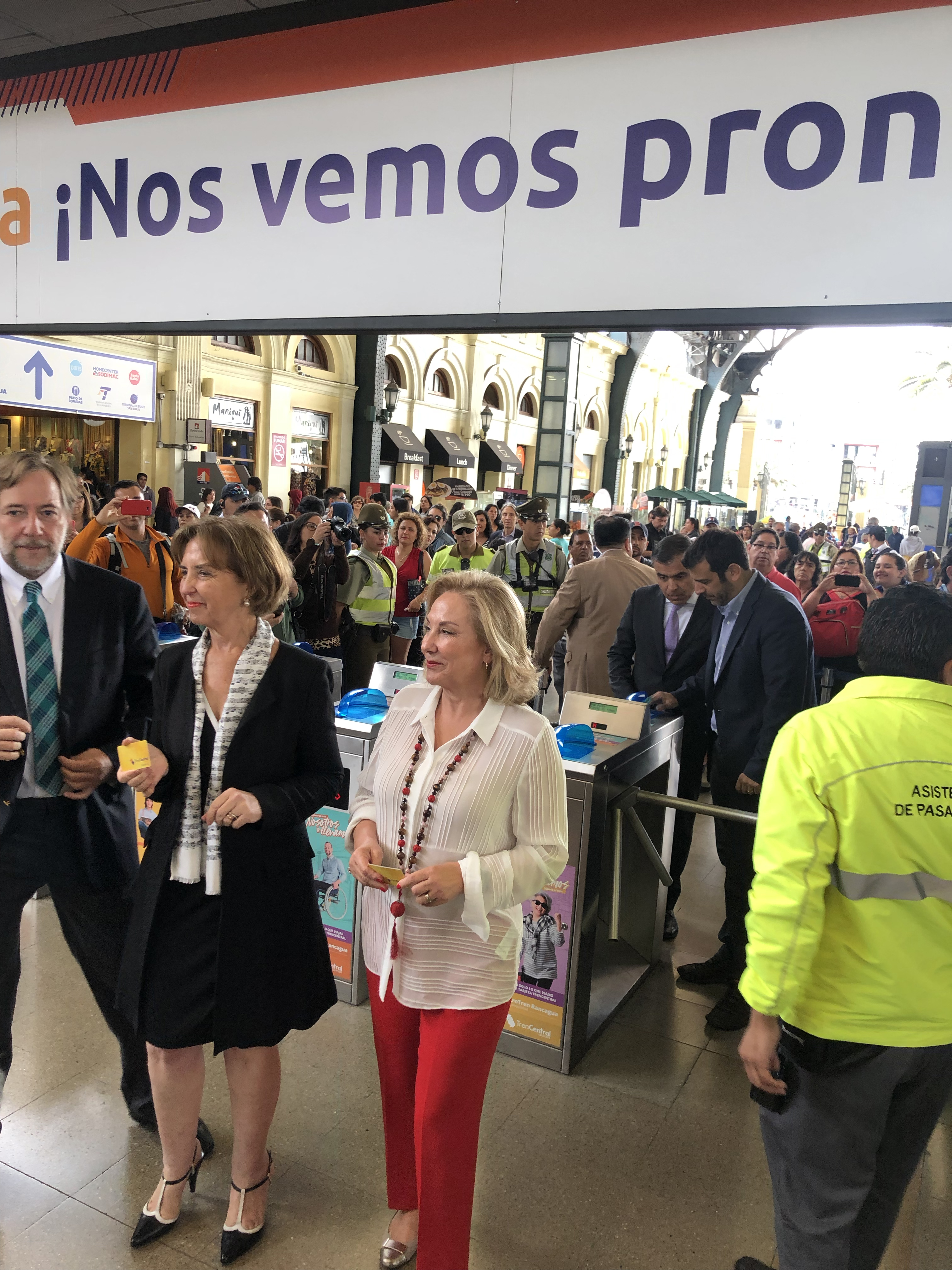 La Primera Dama de la Nación, Cecilia Morel, junto a la Ministra de Transportes y Telecomunicaciones, Gloria Hutt, el Presidente de EFE, Pedro Pablo Errázuriz y el alcalde de Estación Central, Rodrigo Delgado, presentaron esta mañana un nuevo beneficio orientado a los adultos mayores utilizan o quieran utilizar el servicio de Metrotren Rancagua.