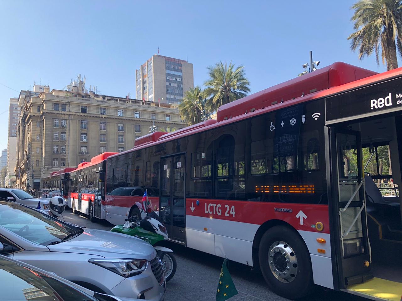 Para la actividad solemne, el Ministerio de Transportes y Telecomunicaciones dispuso de tres buses eléctricos para facilitar el traslado de autoridades a la Catedral Metropolitana de Santiago.
