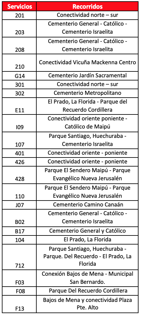 Refuerzo de 21 servicios hacia cementerios con 40 buses adicionales