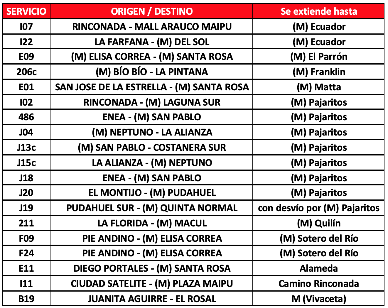 A ellos se suman para esta tarde, 19 extensiones de servicios habituales hacia estaciones de Metro: