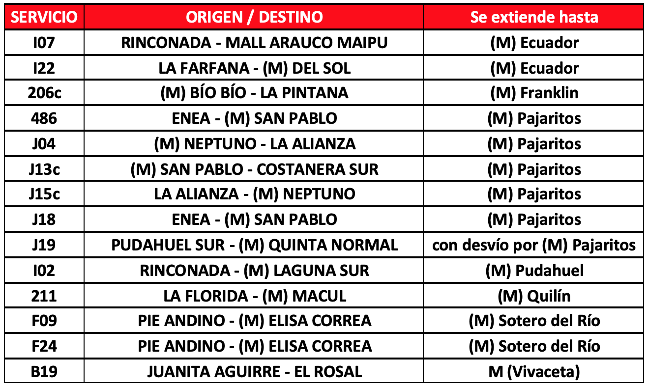 A ellos se suman para esta tarde, 14 extensiones de servicios habituales hacia estaciones de Metro: