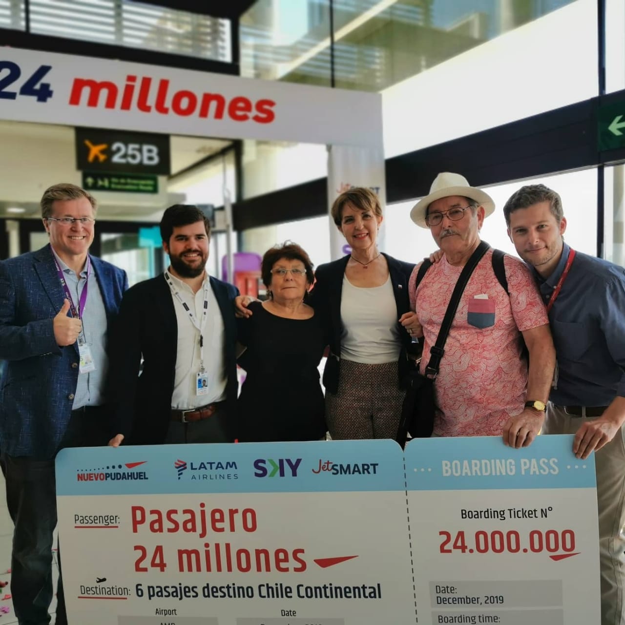 Por primera vez en la historia del Aeropuerto Internacional Arturo Merino BenÃtez circulan 24 millones de pasajeros en un solo año. El hito, que evidencia el gran dinamismo de la industria, fue celebrado con globos y serpentinas en el principal recinto aéreo del paÃs. En el lugar, se premió al pasajero 24 millones. Esa persona, que viajaba desde Puerto Montt, recibió seis pasajes para cualquier destino en territorio de Chile continental.