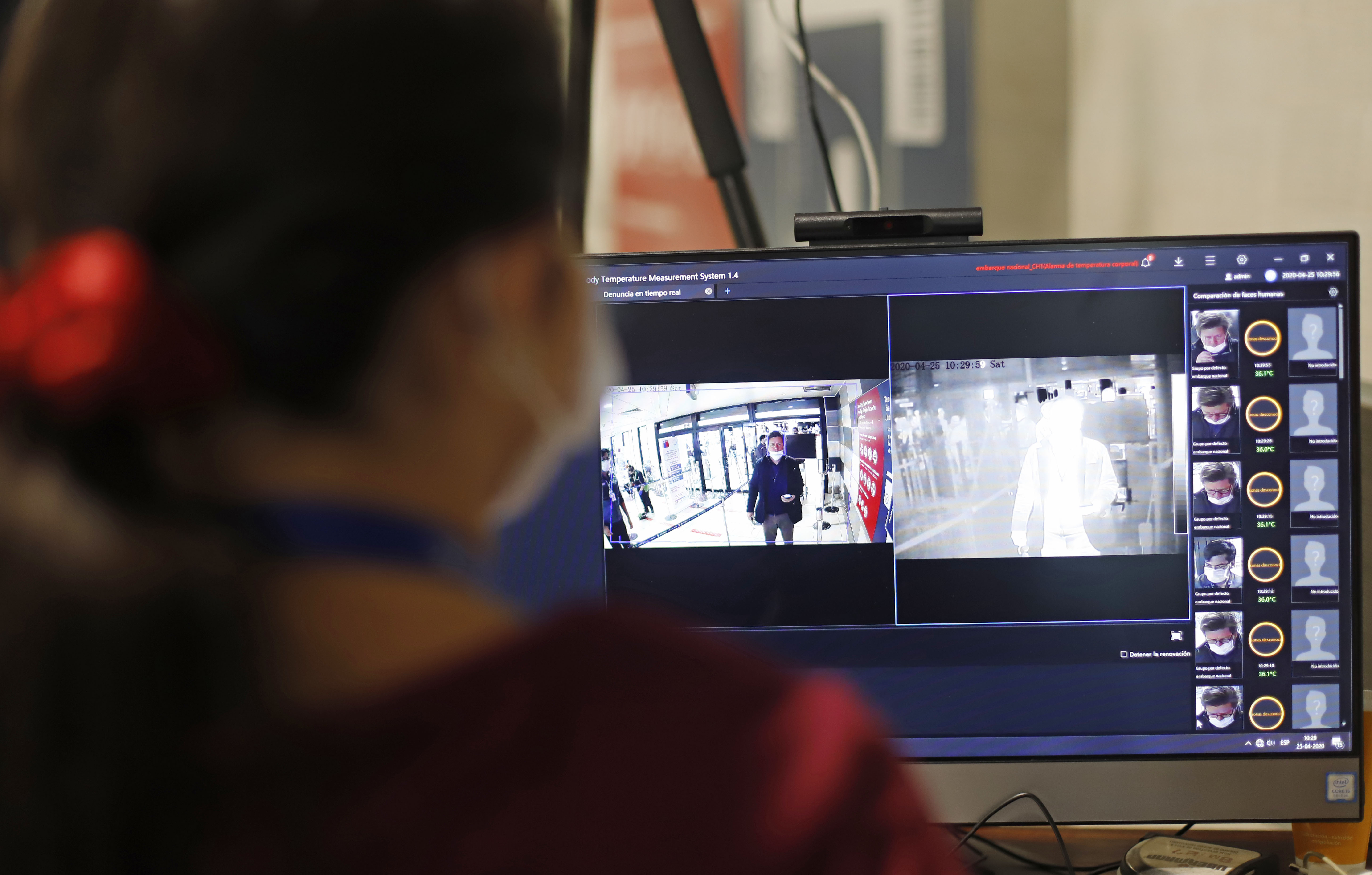 “Hoy, además hemos incorporado gracias al aporte de la empresa Huawei un nuevo elemento que es esta cámara térmica que permite tomar la temperatura a distancia, sin contacto a las personas que están haciendo su ingreso a los aviones. Esta cámara es un elemento moderno que ya se utiliza en otros aeropuertos en el mundo, permitiendo captar la temperatura simultánea de 16 personas. El dispositivo es parte de la Aduana Sanitaria dispuesta para el embarque de pasajeros nacionales del Aeropuerto de Santiago y en el caso de que alguien supere los 37,8°C, se genera una alarma”, explicó.