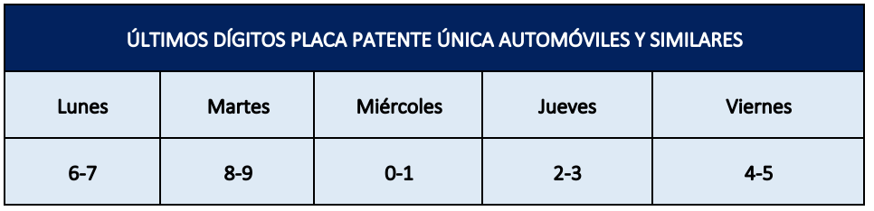 Considerando la pandemia de Covid-19 que afecta al paÃs, en esta oportunidad, se dispuso una excepción para los vehÃculos de uso particular del personal de la salud que se desempeñe en establecimientos públicos o privados, y que cuenten con servicios de urgencia. La solicitud deberá ser realizada por el establecimiento de salud respectivo, indicando los datos de los vehÃculos y acompañando su documentación en la página web www.mtt.gob.cl o al correo electrónico ofiparteseremitrm@mtt.gob.cl