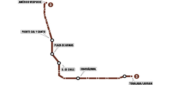 El inicio de las obras de la futura LÃnea 3 en el centro de Santiago considera la construcción de las nuevas estaciones Universidad de Chile y Plaza de Armas, las que complementarán a las ya existentes en las LÃneas 1 y 5, respectivamente, sirviendo como puntos de combinación para los pasajeros del tren subterráneo.