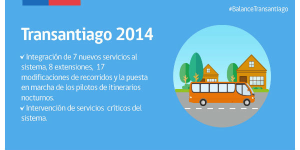 Adicionalmente, durante el 2014 comenz贸 la actualizaci贸n de las m谩s de 11 mil paradas de buses que tiene Transantiago. Adem谩s, comenz贸 la modificaci贸n de las se帽ales de parada en las聽 estaciones de trasbordos e Intermodales, las que desde ahora cuentan con m谩s y mejor informaci贸n para programar y planificar los viajes.